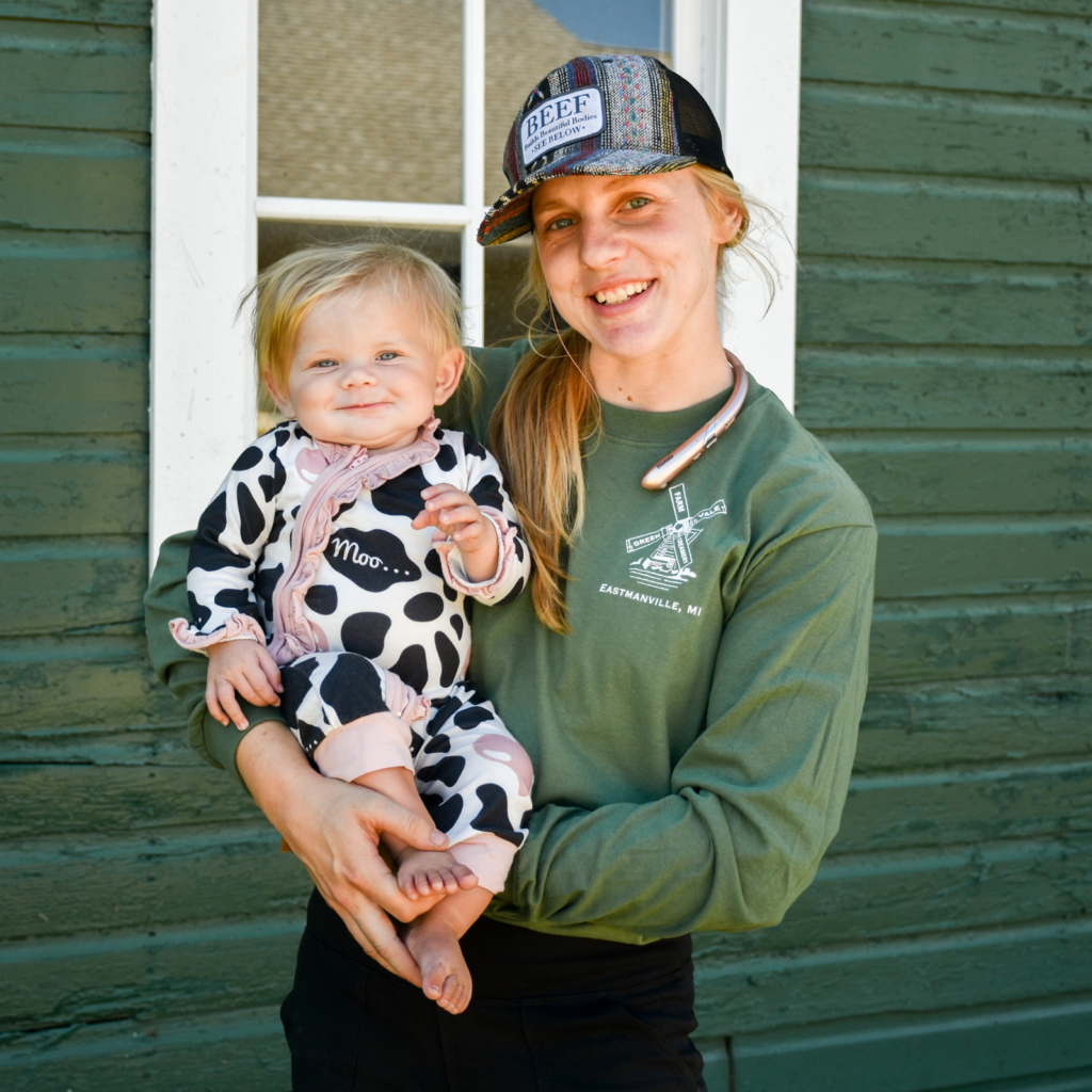 We can’t forget another extremely important part of her farm team – her and Tyler’s ten-month-old daughter, Sage, who tags along during the day-to-day operations of the farm and is a welcoming face in the storefront.