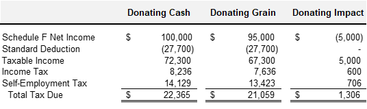 As a farmer you can donate commodity inventory to charity; instead of selling that commodity then giving the charity cash, this approach comes with its advantages.