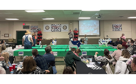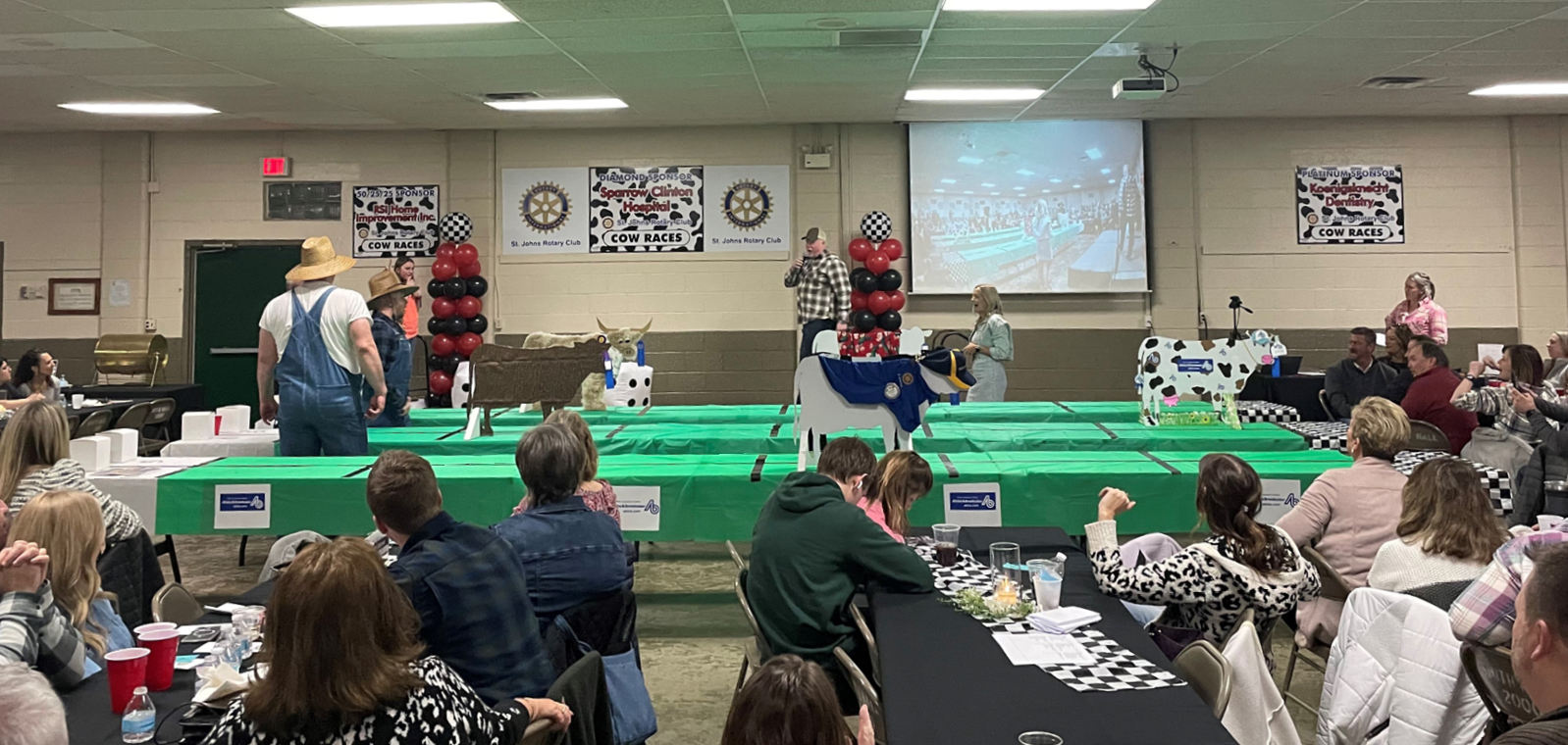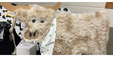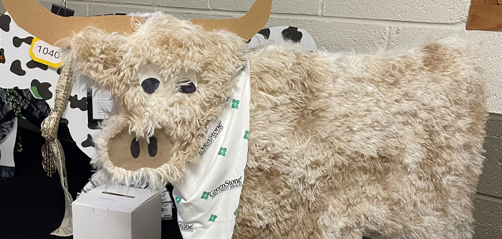 For the fundraiser itself, each business who donated or bought tickets got a large cardboard cow to decorate however they wanted to. Cole said there were almost 30 cows competing in 3 races, with each cow in the race assigned a lane. The people in attendance could buy ‘cow bucks’ and bet on whichever cow they thought would win. If the dice were lucky enough to land on your lane number, your cow moved forward. With help of the dice and cow bucks, GreenStone’s cow was fortunate to win the overall race as well as the most votes for best decorated cow!